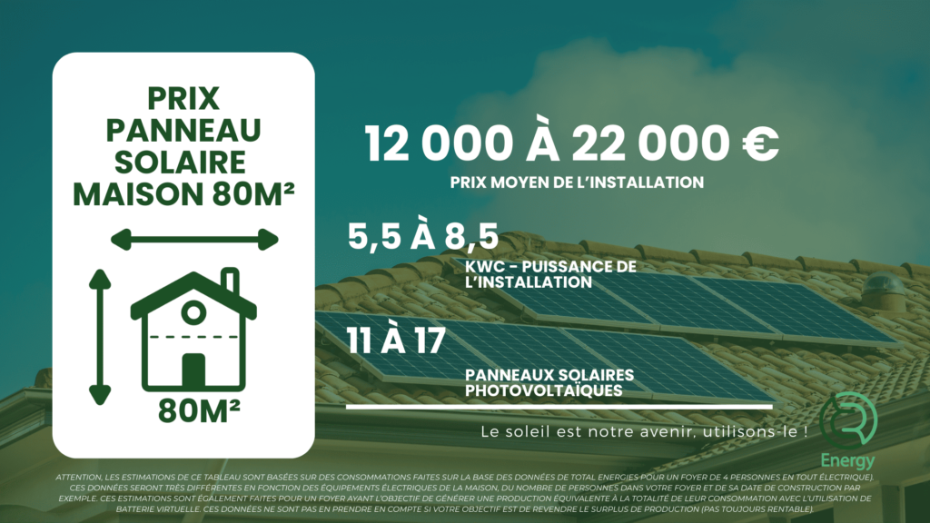 Le prix moyen pour équiper une maison de 80 m² avec des panneaux photovoltaïques oscille entre 12 000 et 22 000 €